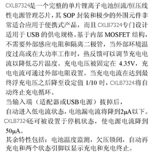 CXLB73241A线性锂电池充电器Line Constant Current/Voltage 4.25~6.5V