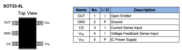 CXOA4209集成了双运算放大器和精密分路调节器(典型。1.25伏)。CXOA4209的主要功能是对低功率RCC电路进行电流控制和电流检测。小型封装SOT-23-5L适用于小型AC-DC电源或适配器应用。