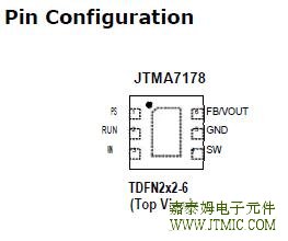 ceramic output capacitor. Input voltage from 2.7V to 6.0V makes the JTMA7178 ideally suited for single Li-Ion battery powered applications. 100%duty cycle provides low dropout operation, extending battery life in portable electrical devices. The internally fixed 1.5MHz operating frequency allows the using