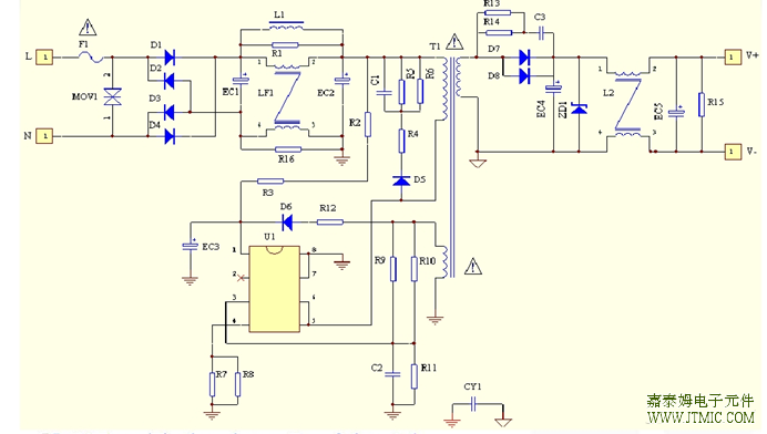 2、控制电路上所有的地先连起来然后一起连到输入电解电容的地。
