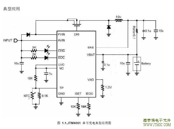 电阶段. 当充电电流下降到 IEOC 以下, JTM4061 给出
