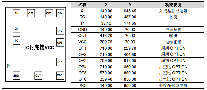 OP1~OP6邦定PAD采用低功耗设计,OUT输出高电平时,邦定PAD无电流。