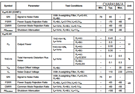 ·CXAR4186动态范围控制(DRC)提供最大15dB控制(2:1压缩比)
